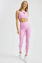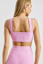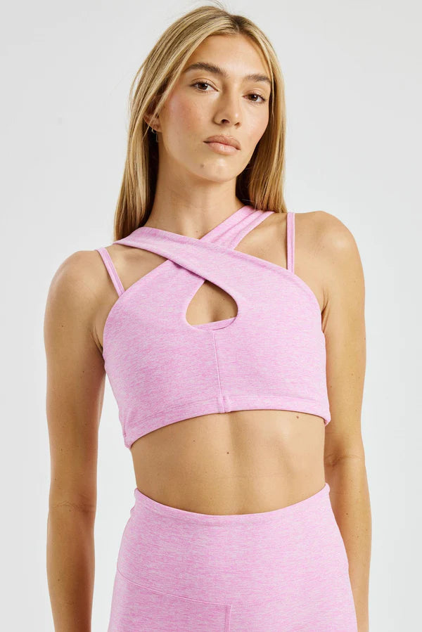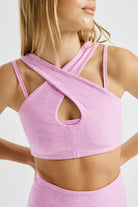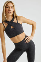 Double the straps for double the support. This bra features a layered construction with a cross strap overlay and racerback finish, so you can move freely through your workout. Made from Active Stretch Jersey, it has an elastic waistband that keeps you secure while exercising.